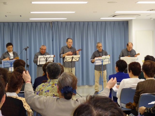「プログラム6番。ウクレレサークルすぎれれ会の演奏です。」