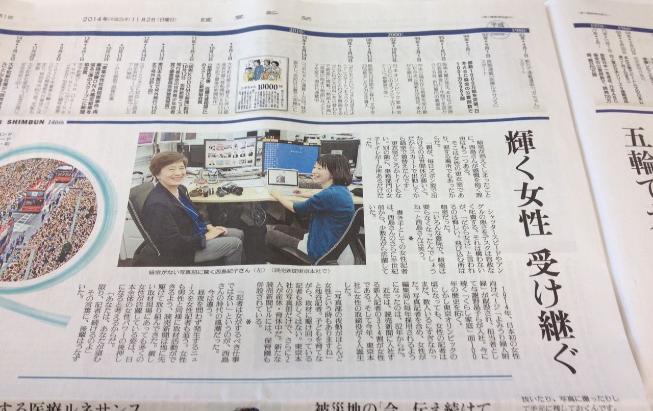 読売新聞創刊140周年に掲載された新聞を見せてくれました。