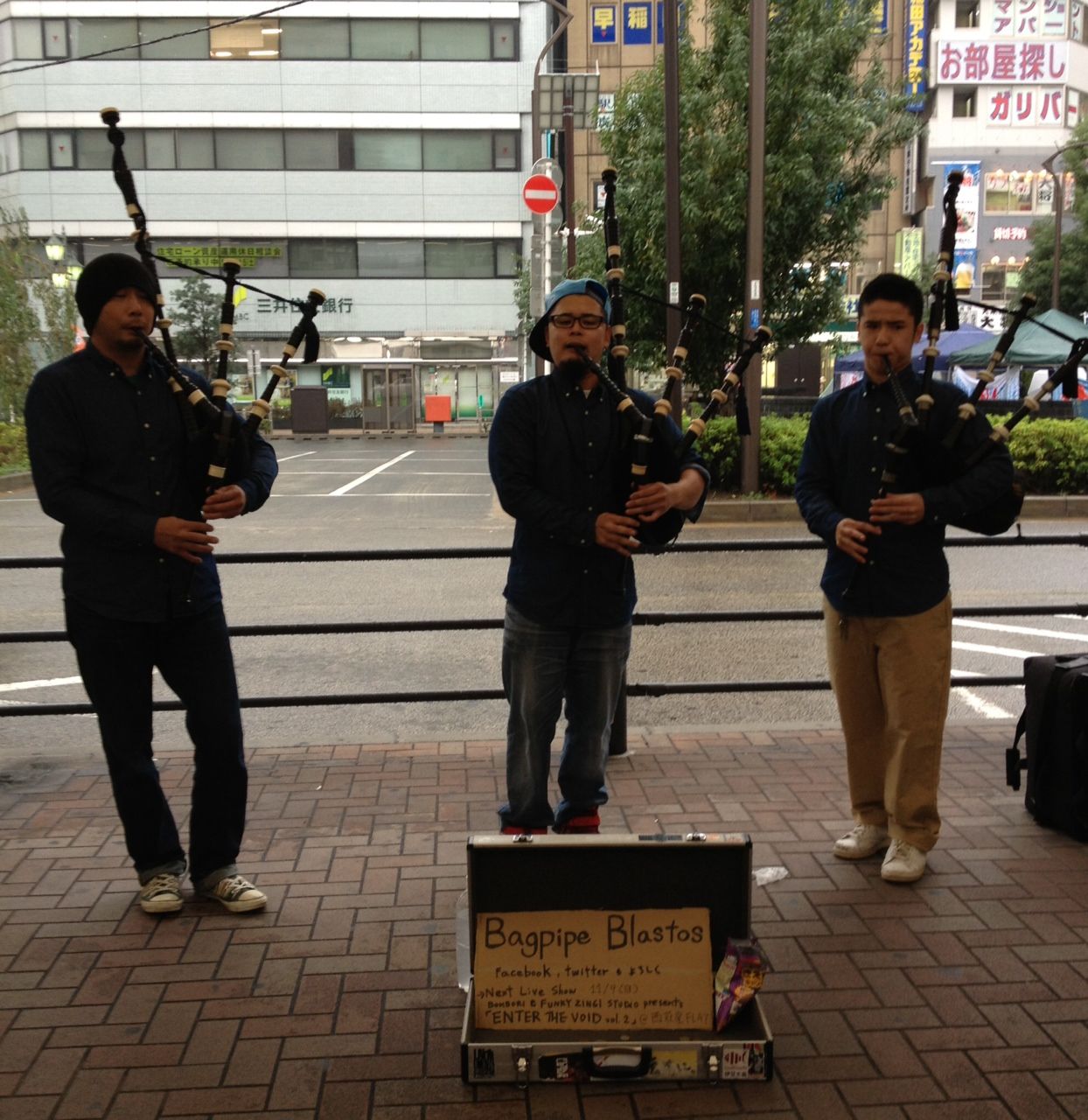 JR高円寺駅前は、バグパイプの迫力ある演奏に包まれていました!