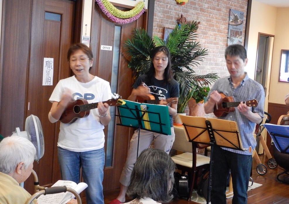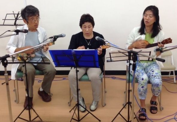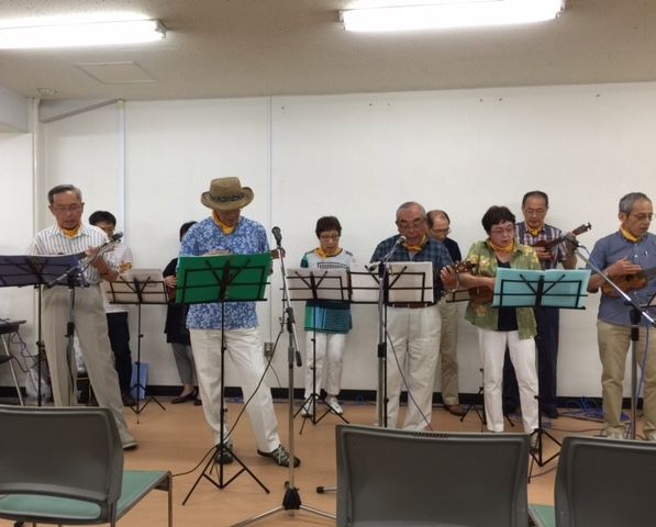 「ウクレレサークルすぎれれ会」の発表曲は、「想い出の渚」「南国の夜」