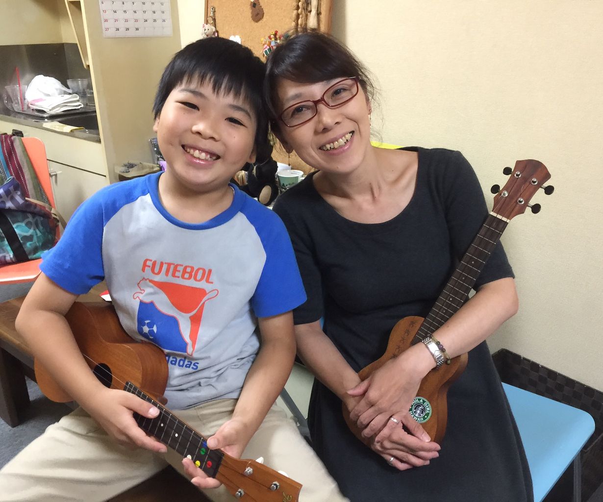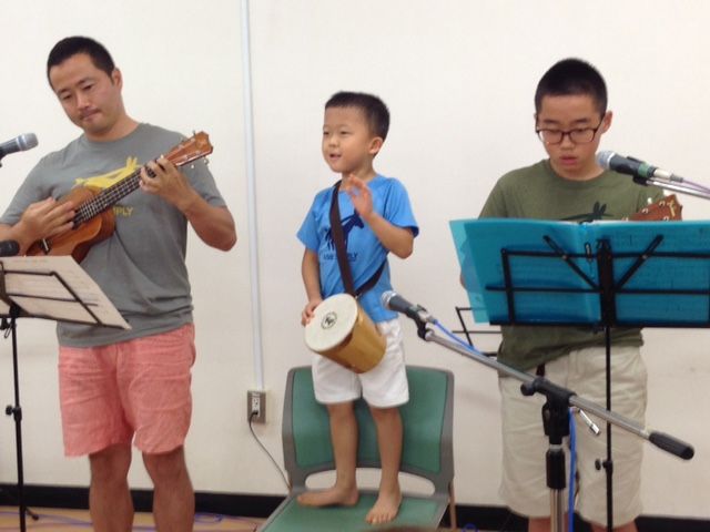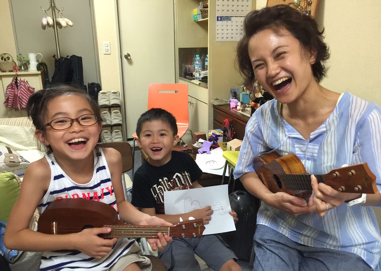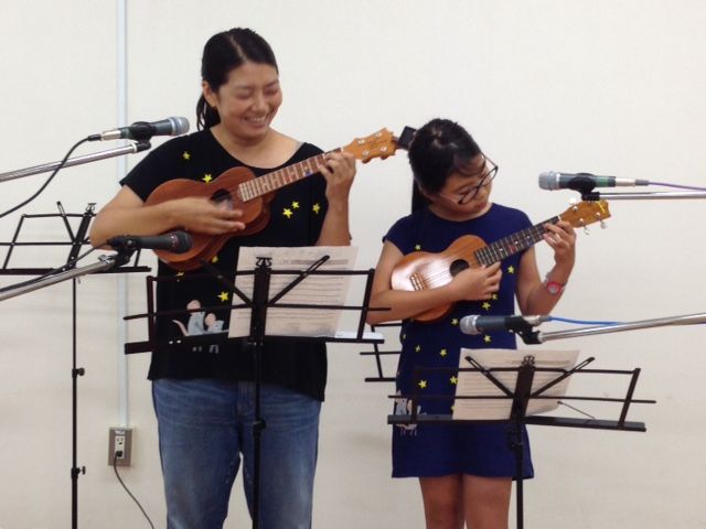 子供たちは夏休み。親子ウクレレレッスンは、平日の昼間に。