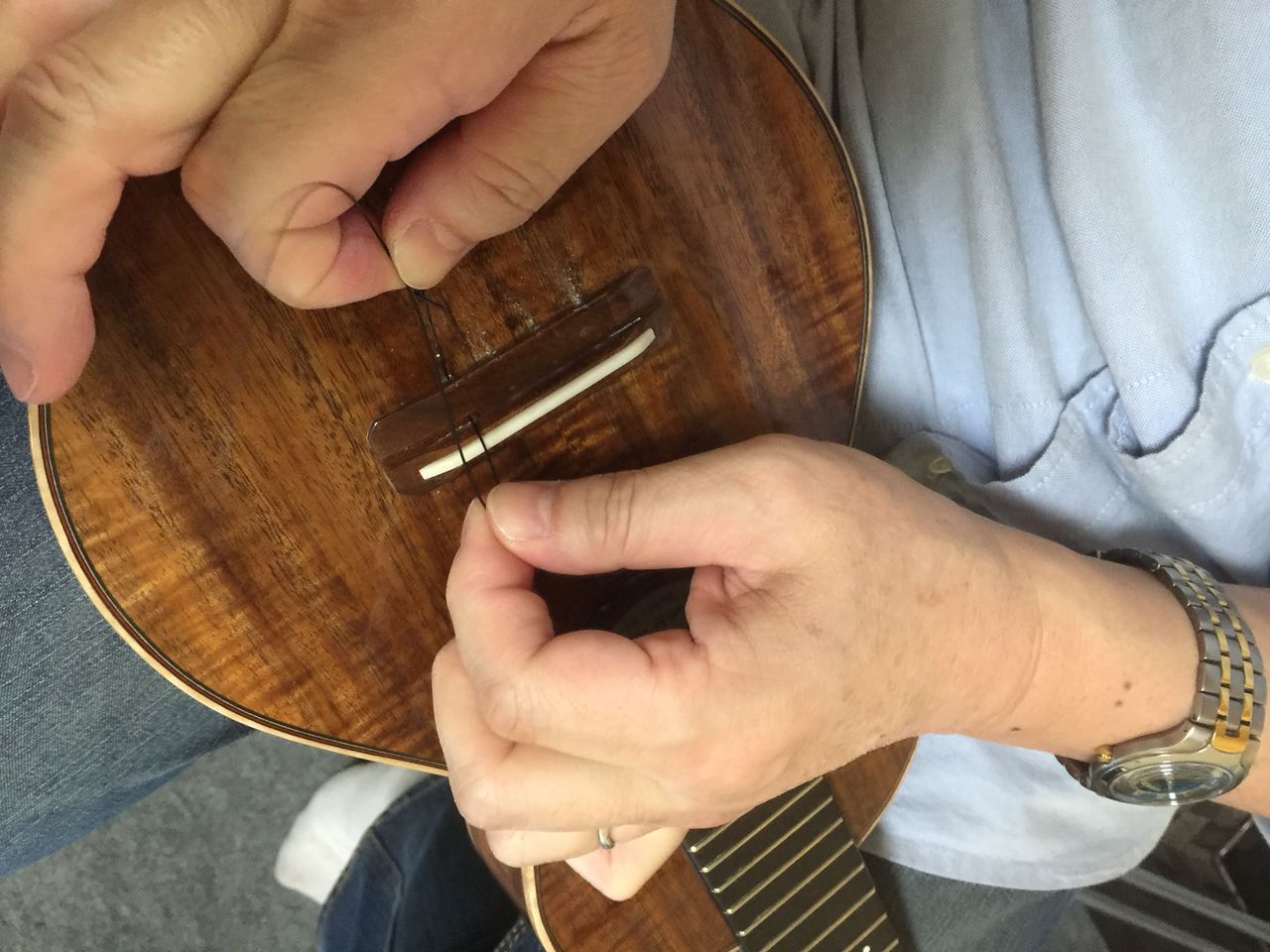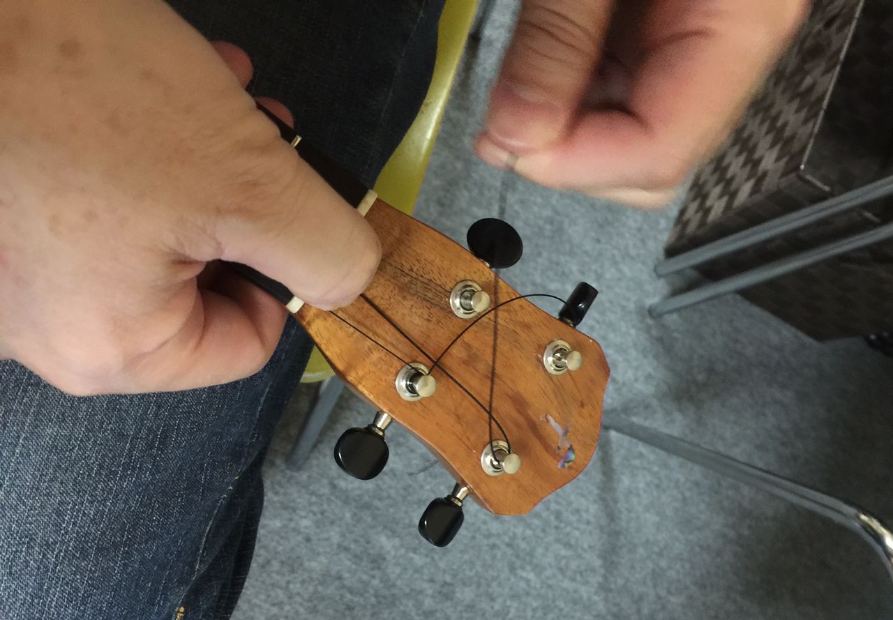 次のレッスンの方が見えて、弦交換レッスンは、4弦の処理まで。