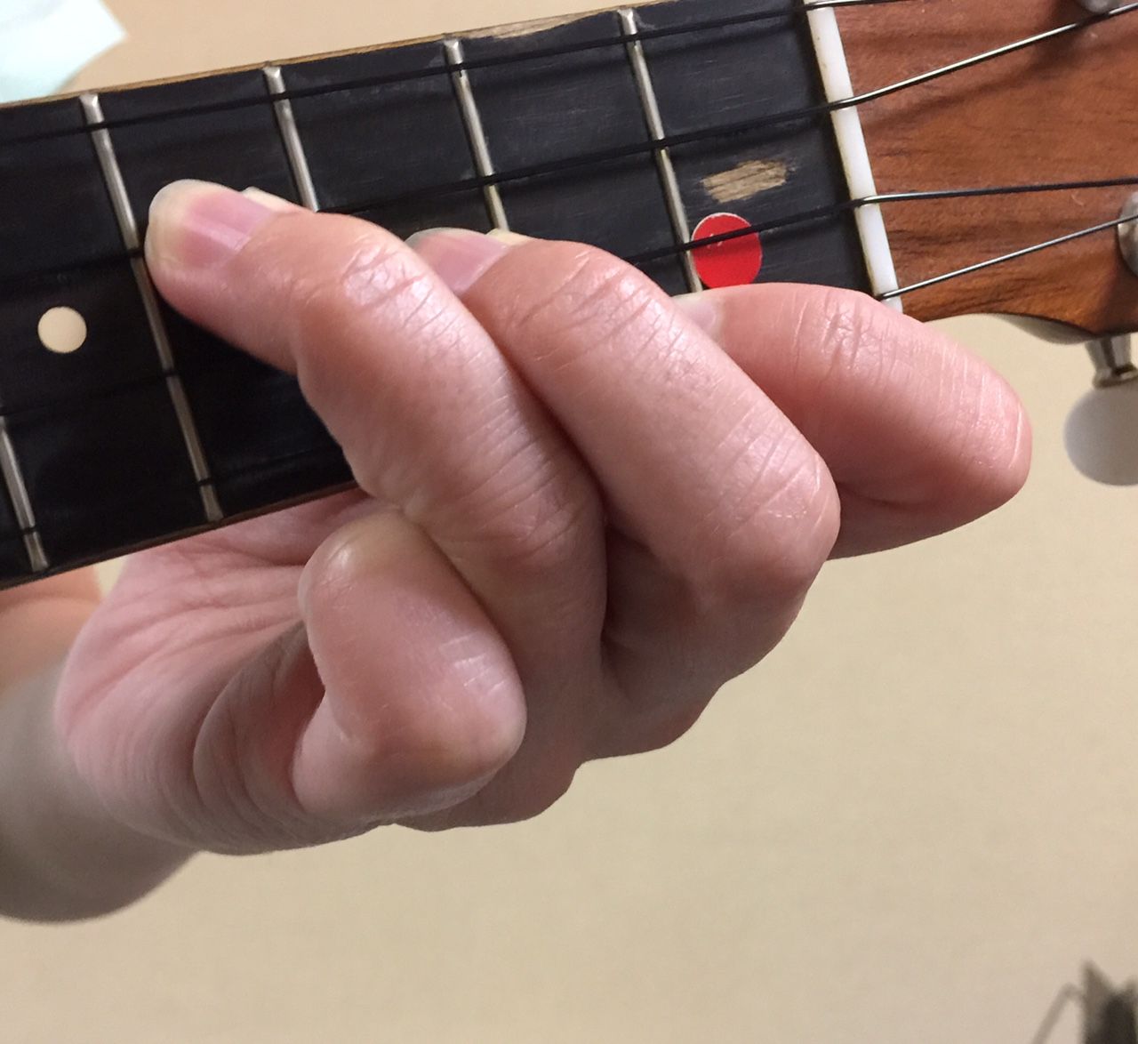 手の甲は床と平行になっているのがウクレレでコードの押さえ方の基本。