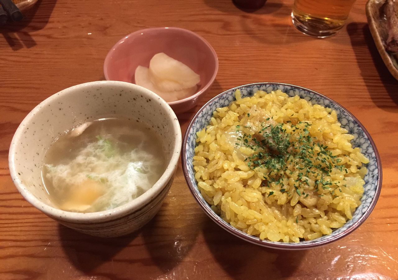 「鳥輿フルコース」の〆は、ドライカレーとスープ