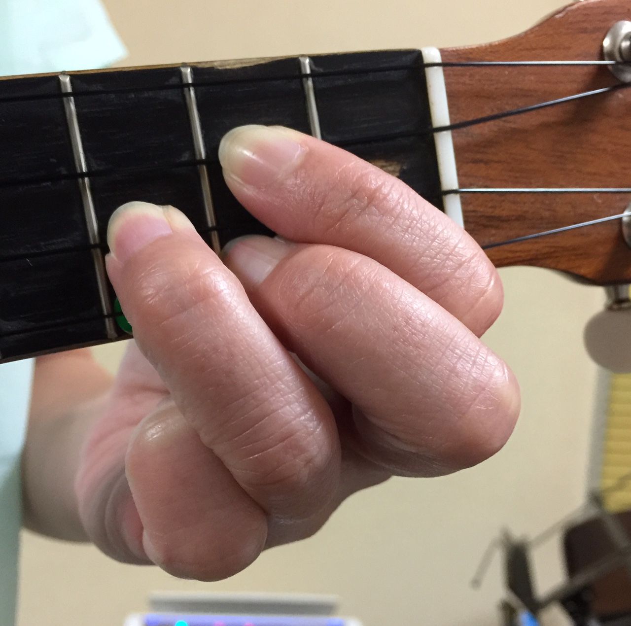 小指−薬指−人差し指 2フレットセーハの順番で押さえるコード