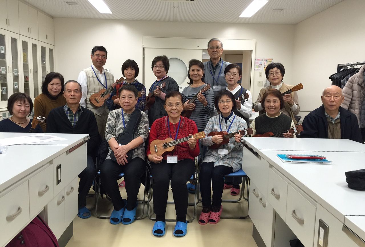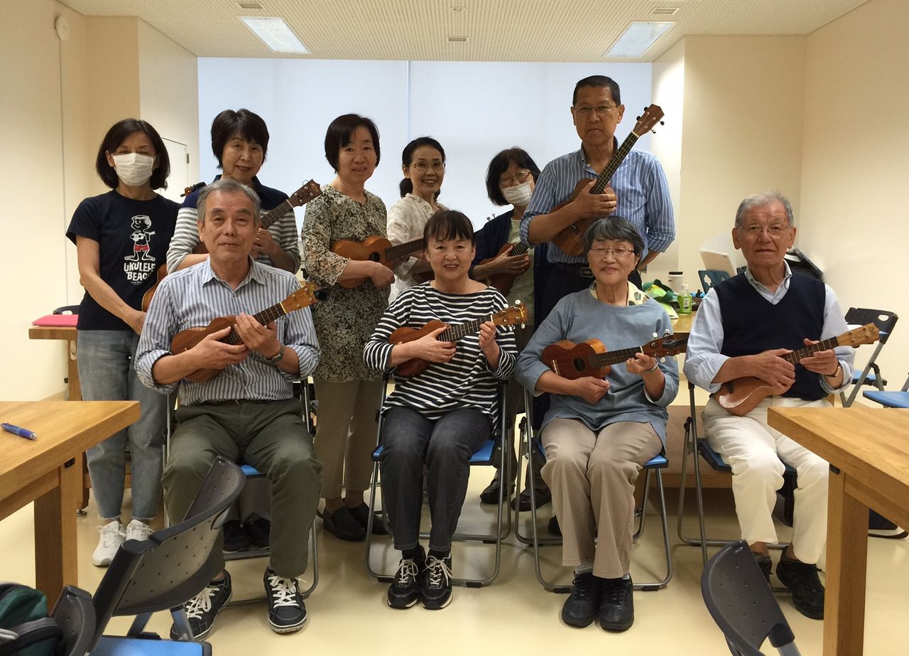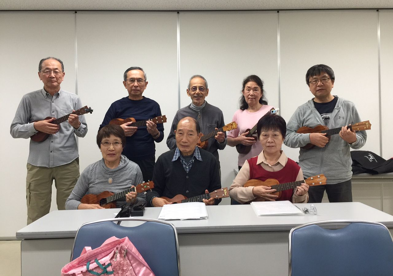 区主催のウクレレ講座から発足したウクレレサークルのレッスン日でした。
