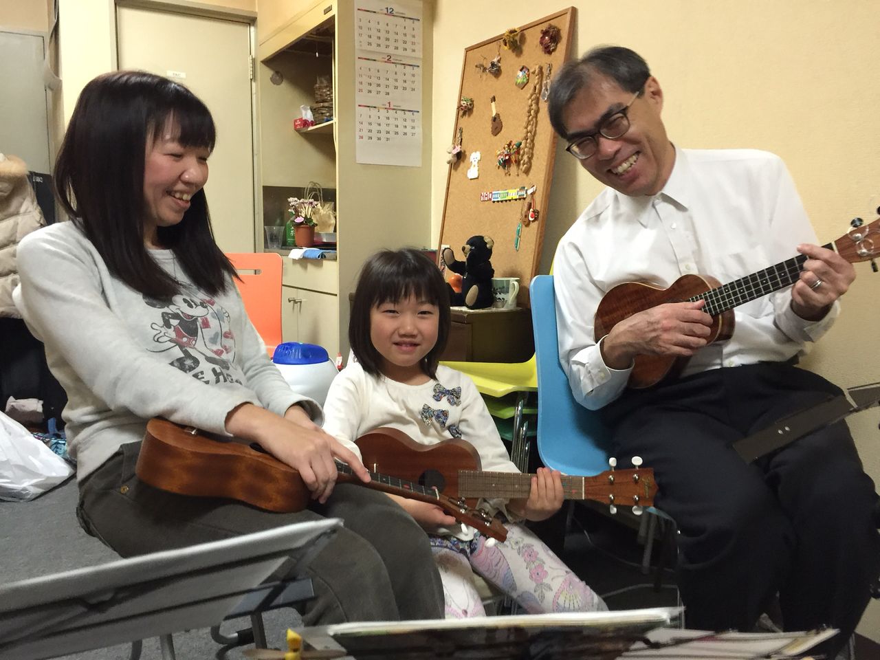 「子供を連れて帰ってきた」ウクレレ親子レッスン