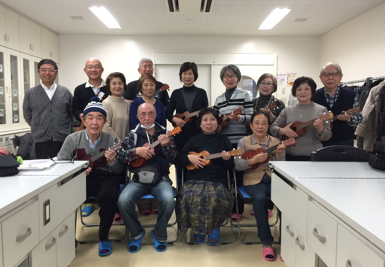 講座の後は、ウクレレサークル 「さざなみ・ウクレレクラブ」