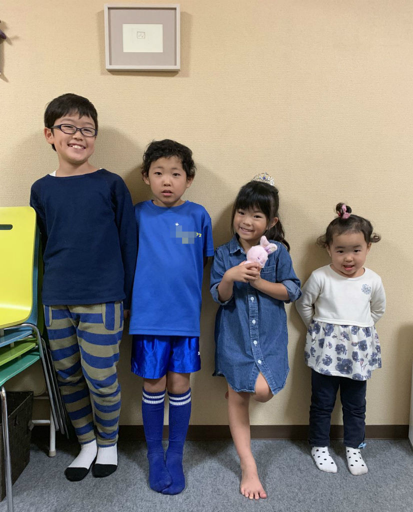 参加してくれた子供は、3歳、5歳、小学1年生、小学5年生。