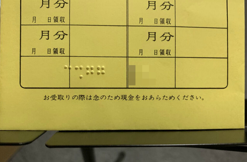 月謝袋を受け取ったら、点字が付いていた。