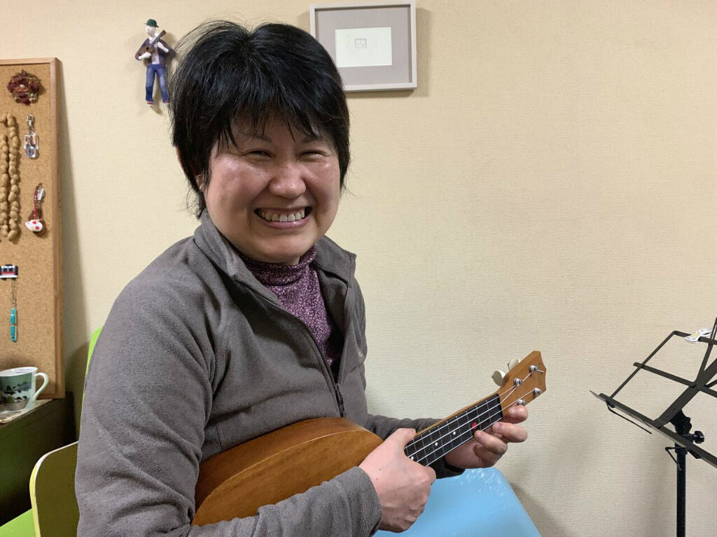 楽器初めて、ウクレレ初めての、ご主人のウクレレ単発レッスン。