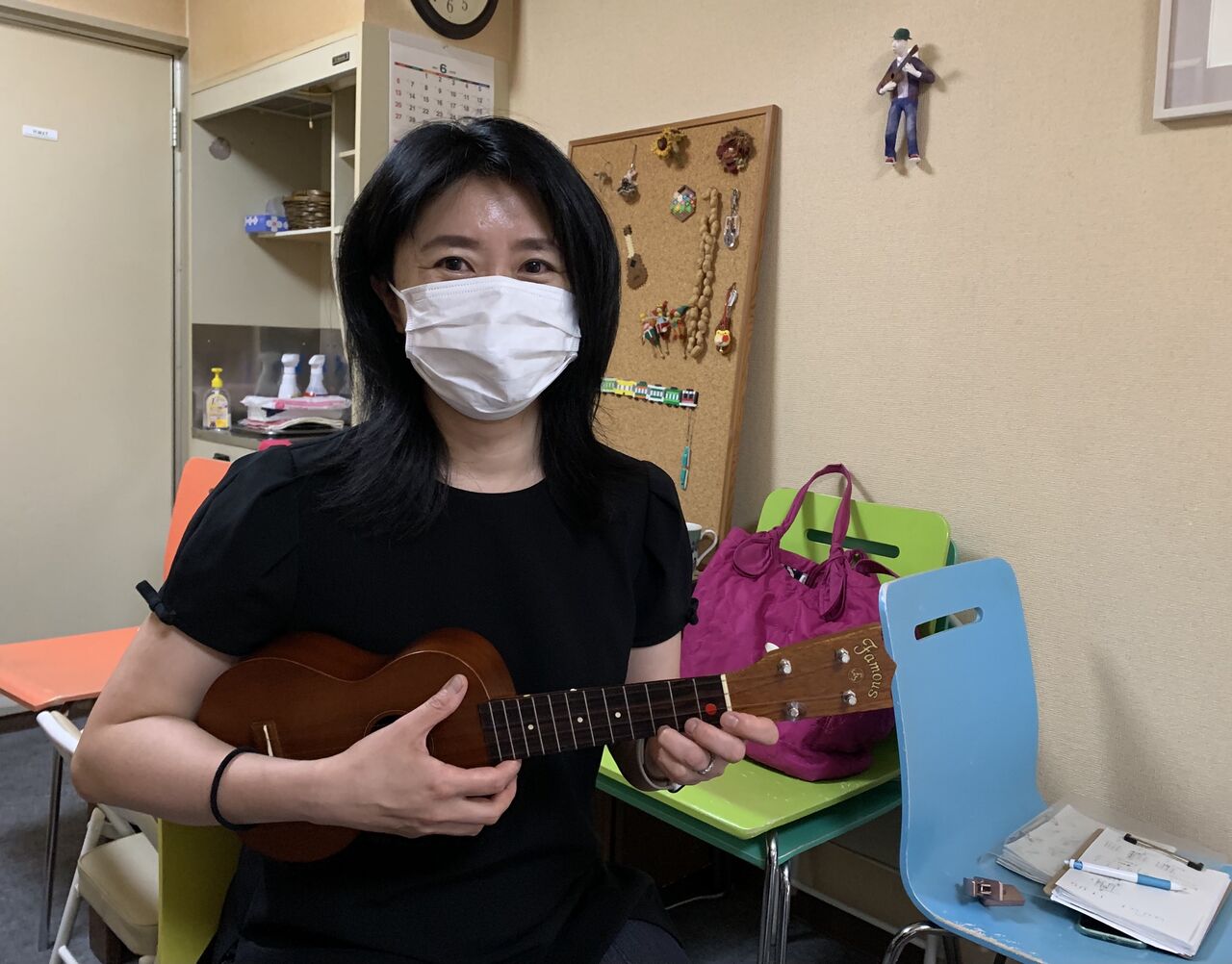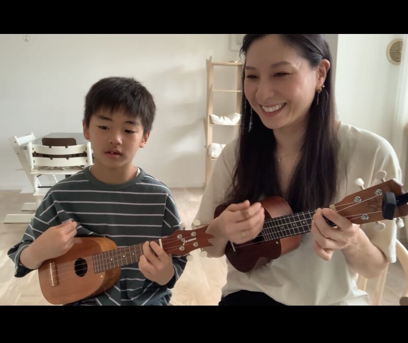 その後、子供と一緒にウクレレ、ペアレッスン。