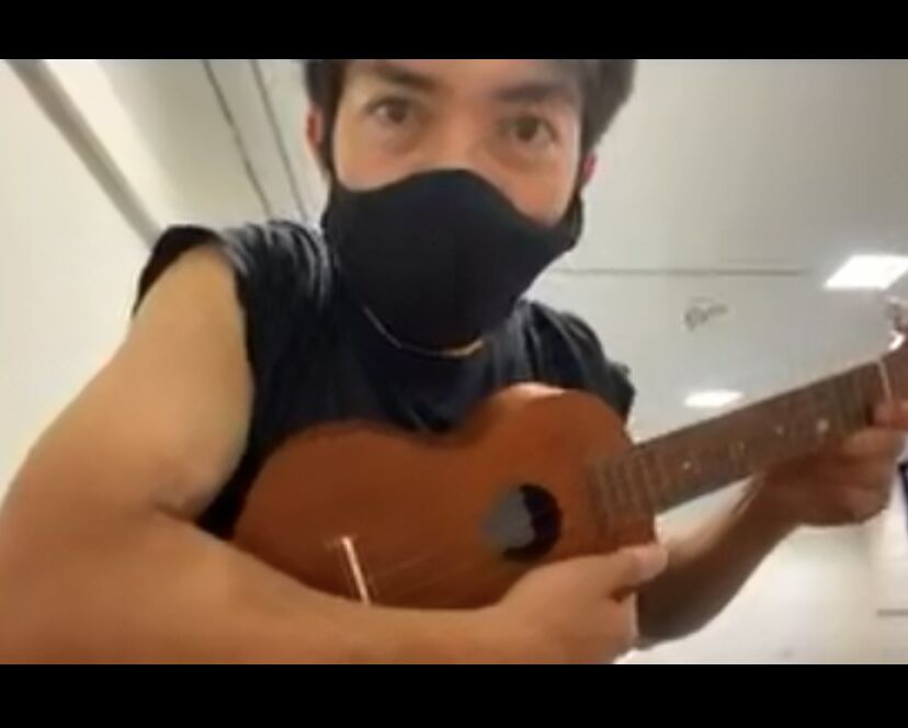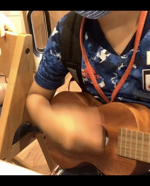 かずと君は、ウクレレでメロディ弾き。