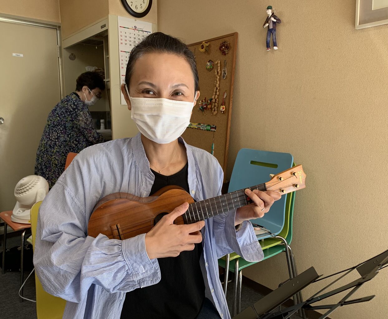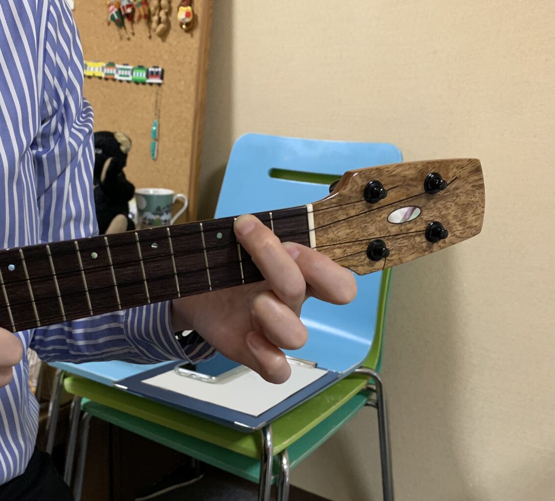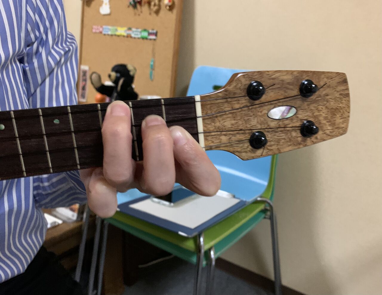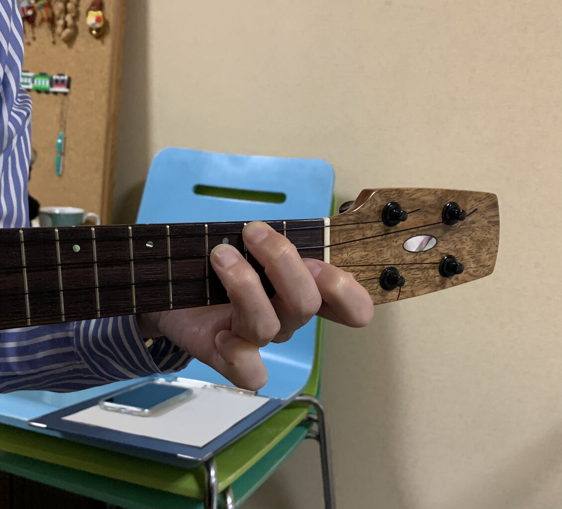 ウクレレ抱える姿勢、コード押さえ方を重点にレッスン。