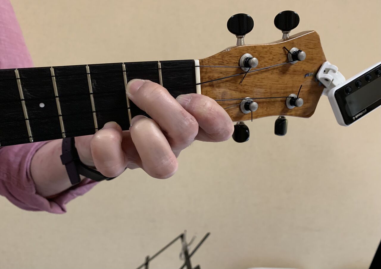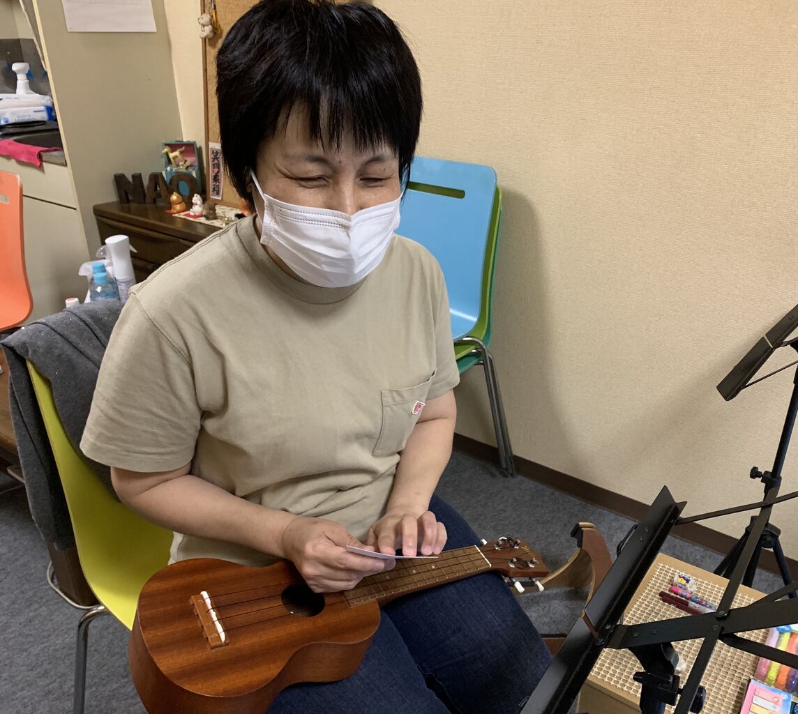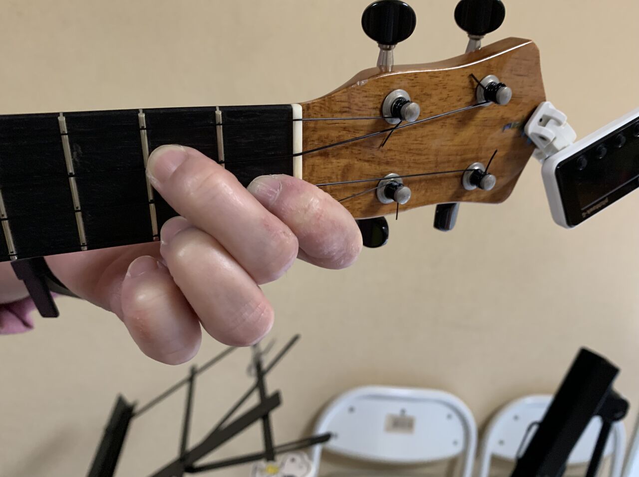 ウクレレ抱える姿勢、コード押さえ方を重点にレッスン。