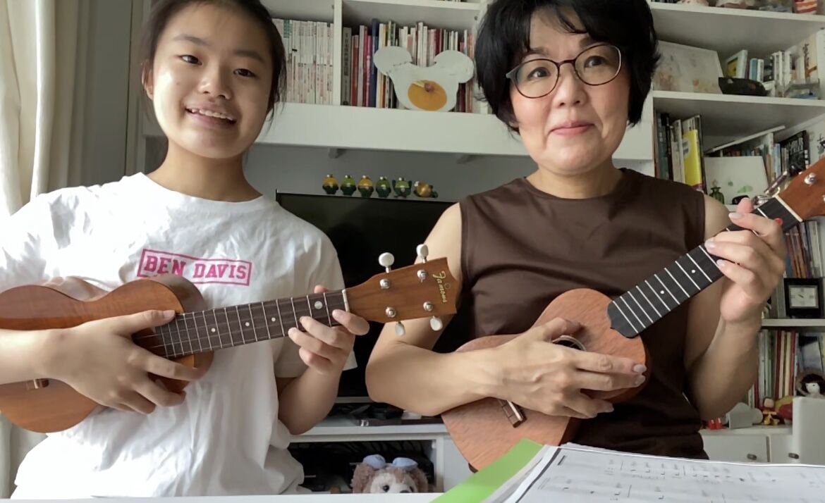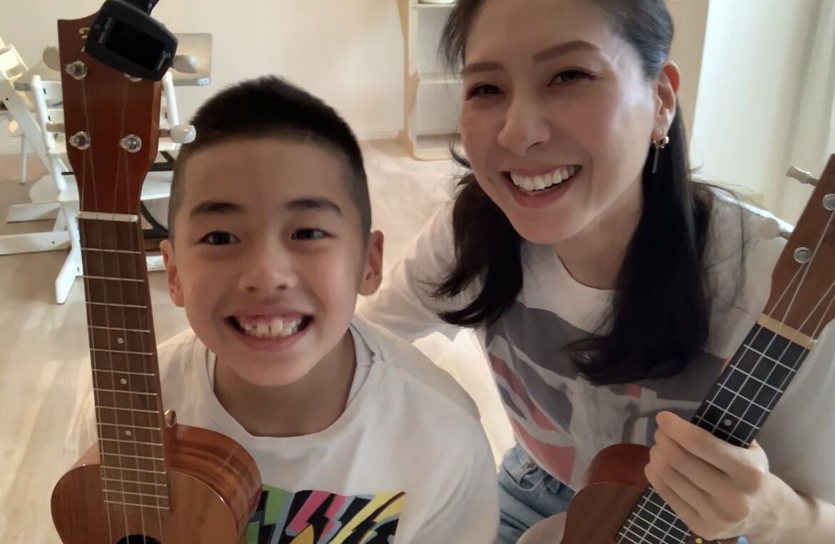 子供と一緒にウクレレを習って。