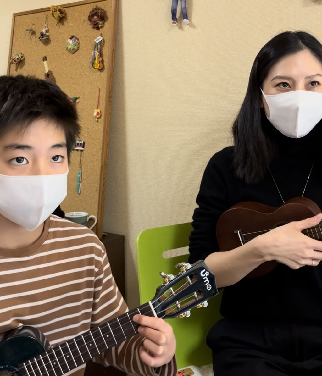 ウクレレ構え方、姿勢から直して、レッスン4年目に。
