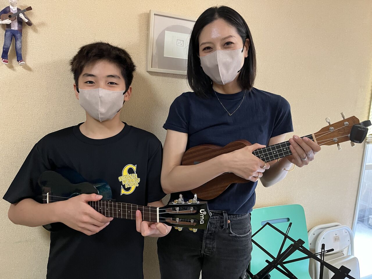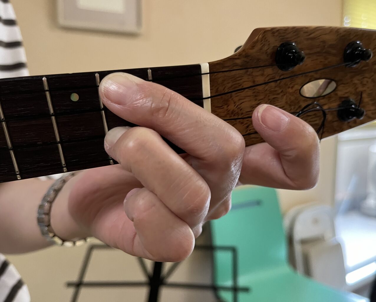 コード押さえ方、コードチェンジやり方をレッスンしているウクレレ教室。