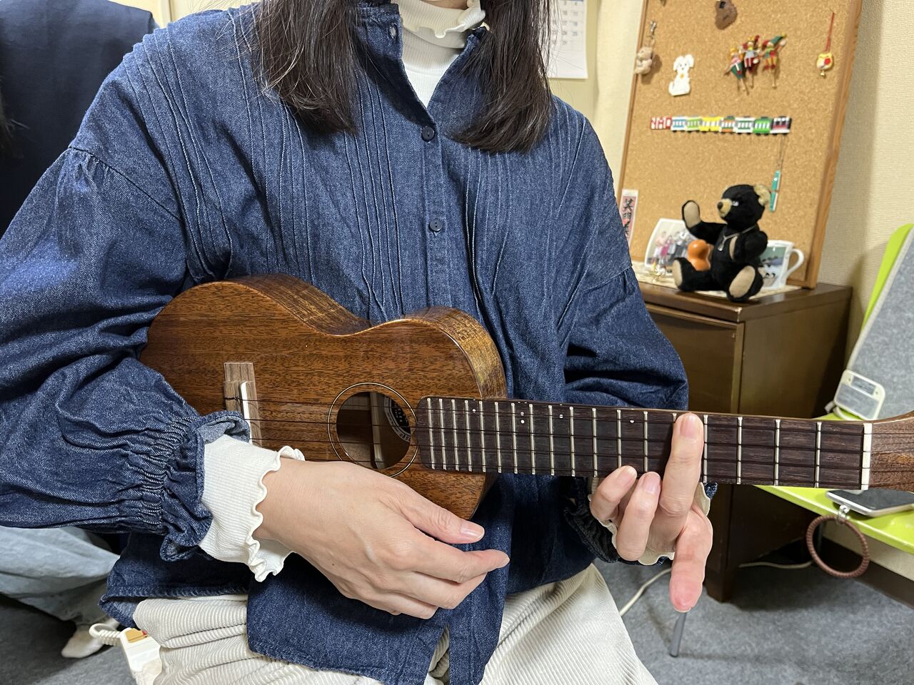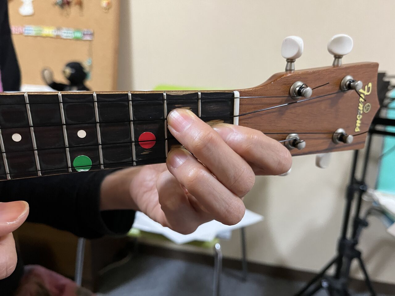 ウクレレ抱え方(姿勢)コード押さえ方の基礎に時間をかけます。