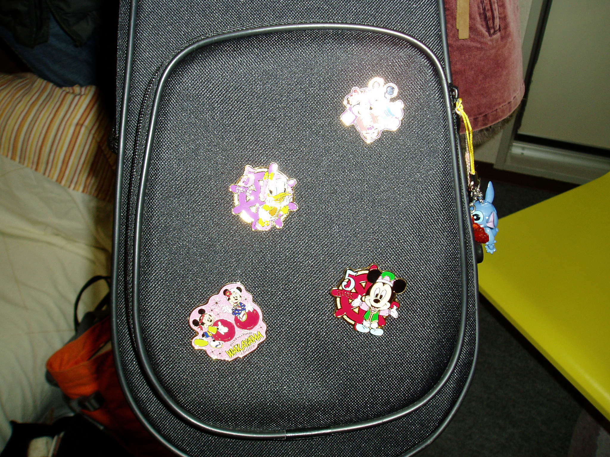 こちら、生徒さんのウクレレケースに、ディズニーの地域限定・ピンバッジ。