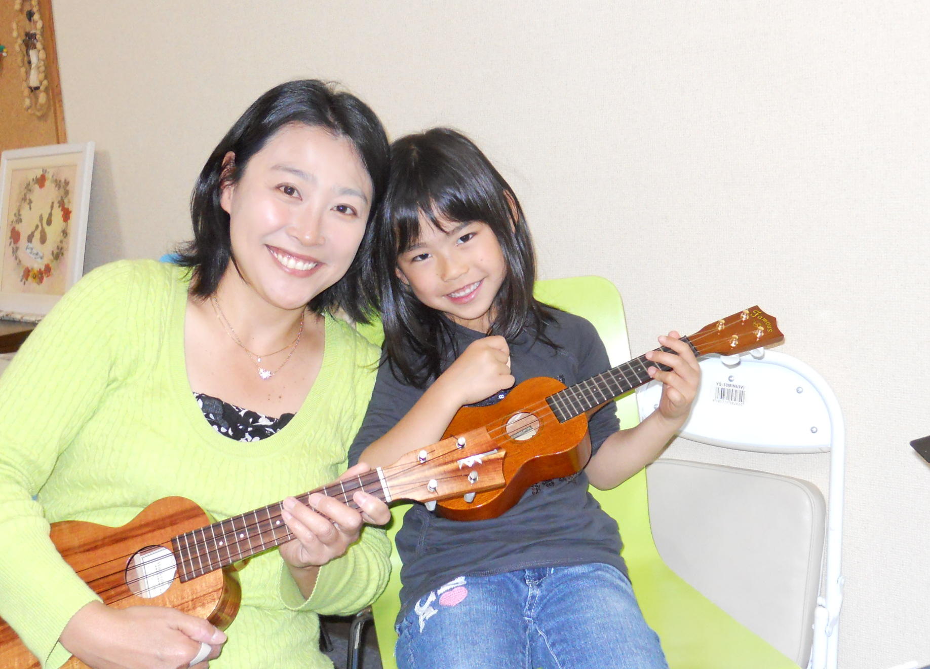 奈津ちゃん高田馬場教室。親子。 杉野さん、母娘ウクレレレッスン
