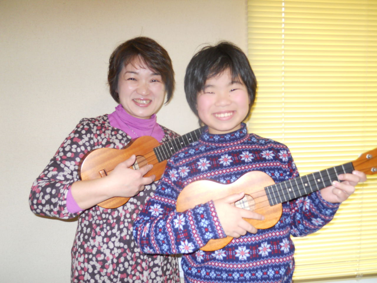 みなちゃん親と子で、ウクレレ。 母と娘で、ウクレレ。