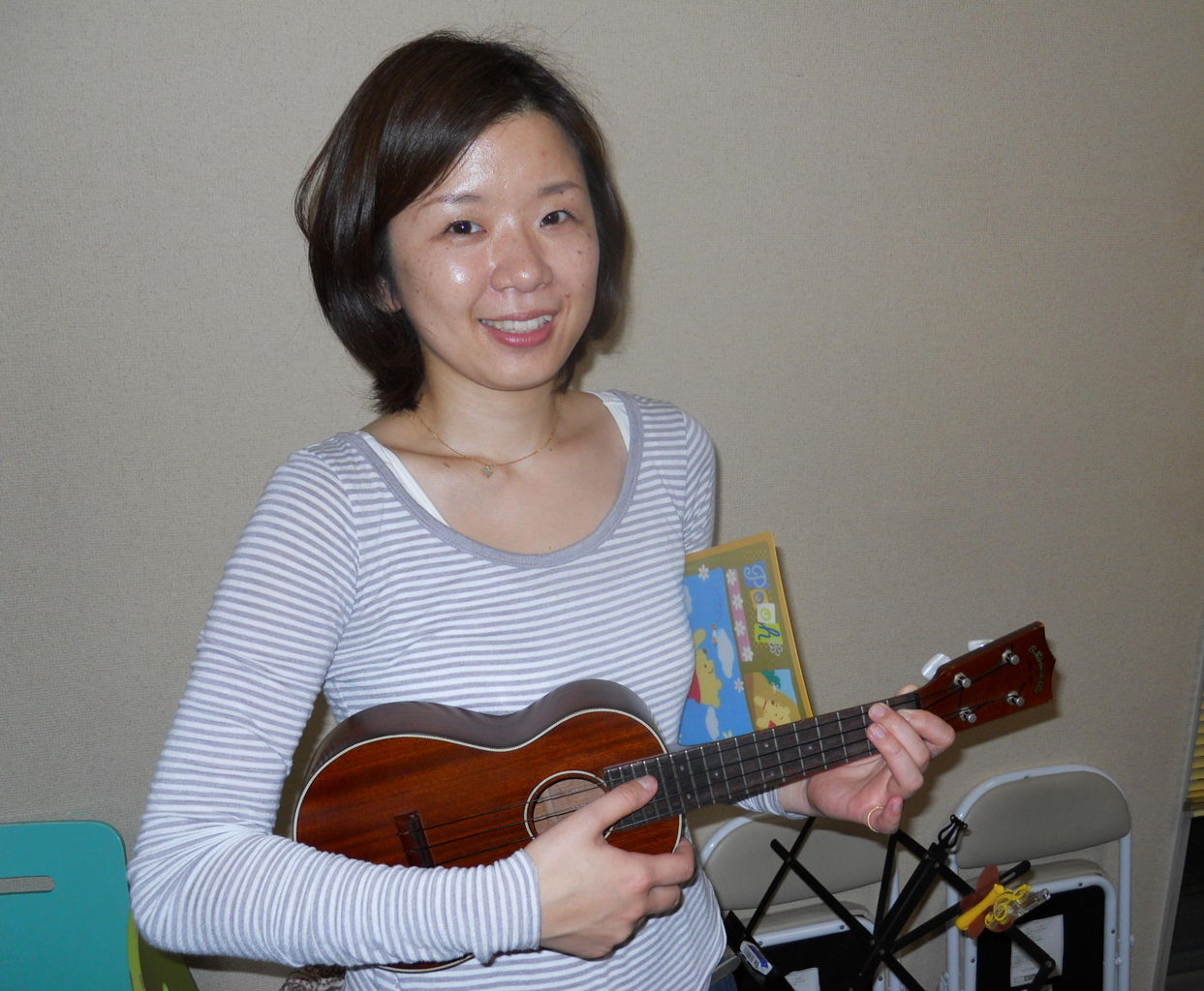 初心者ウクレレ教室だからこそ、ウクレレの持ち方、姿勢も。