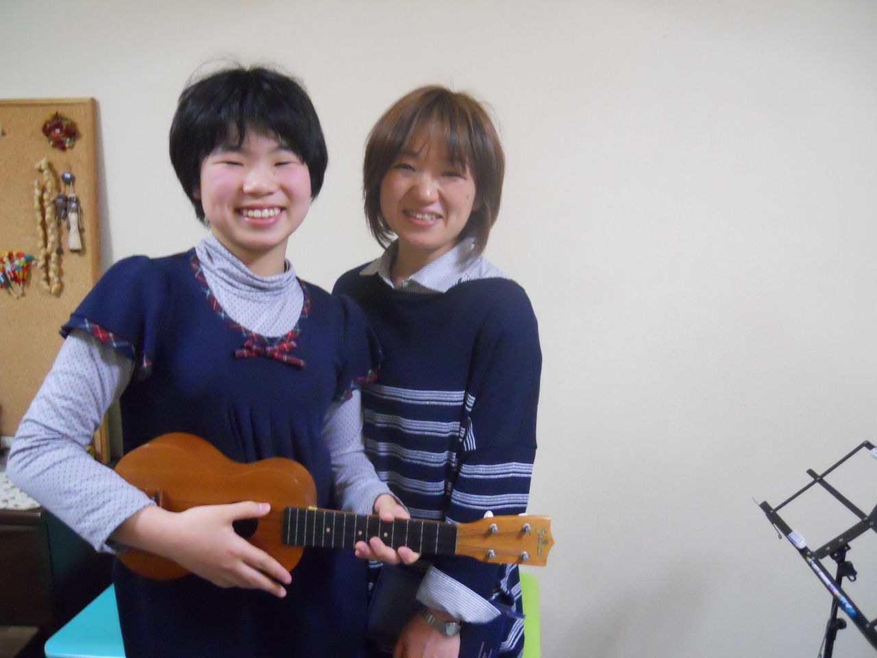 高田馬場NAOウクレレ教室、親子レッスン。 お母さんと、小学5年生のお嬢さん