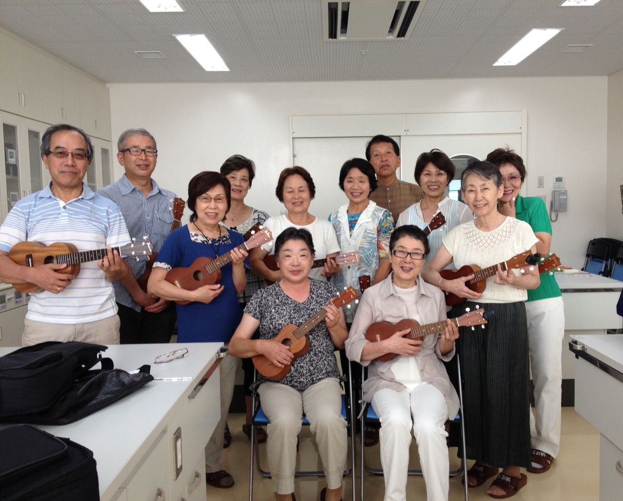 黒澤楽器ウクレレレッスン生の皆さんと、