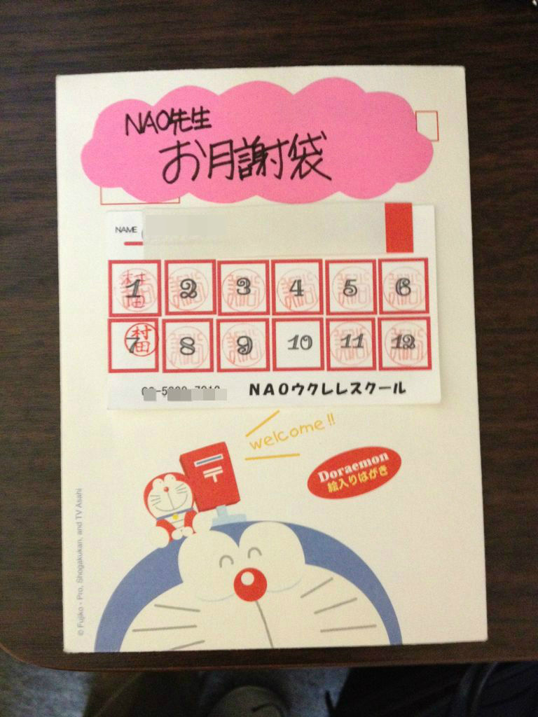 こちら、個人レッスン、 郁子さん 自作の月謝袋。