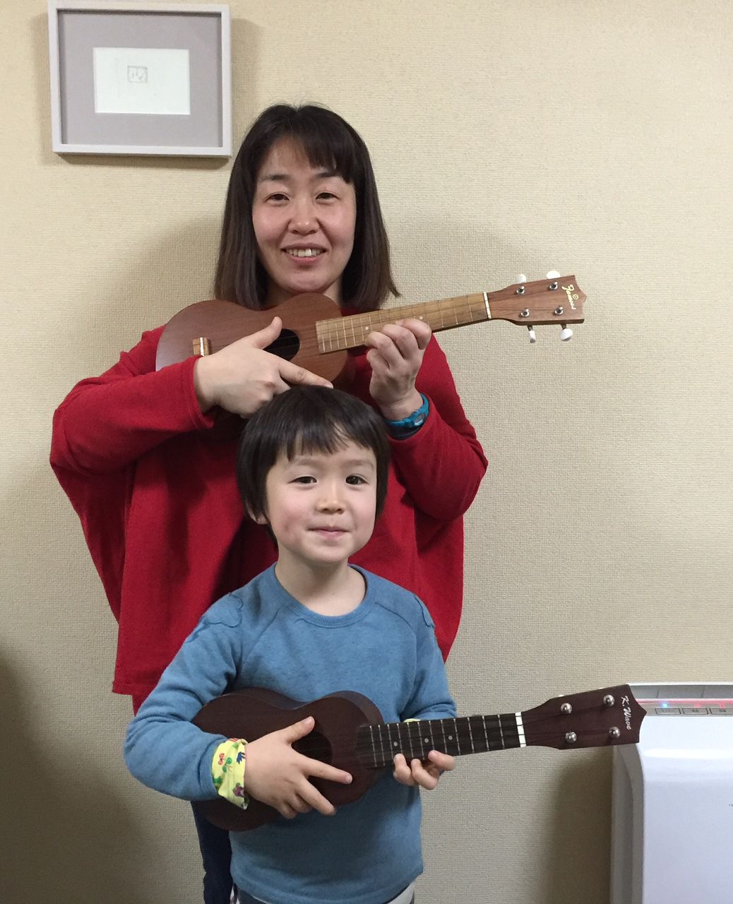 親子でウクレレを習いに来て、親子で一緒に基礎からレッスン。