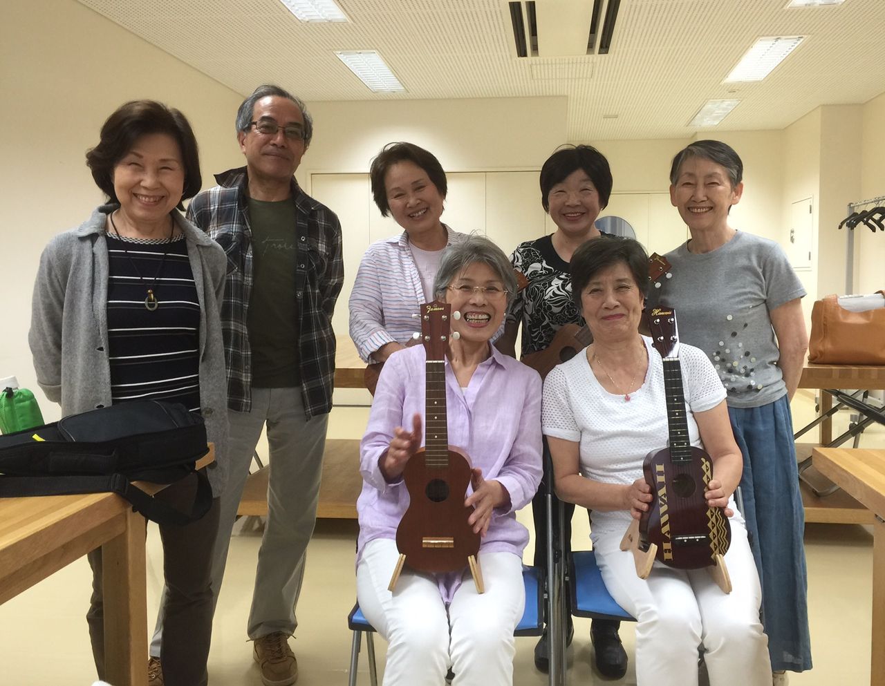 ウクレレ講座レッスン後、隣りの工作室へ移動。ウクレレサークルレッスン。