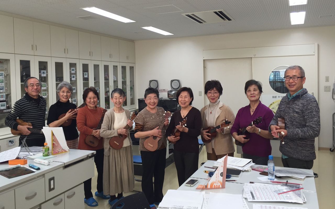 60歳以上のウクレレサークルですが、皆さん姿勢がいい。