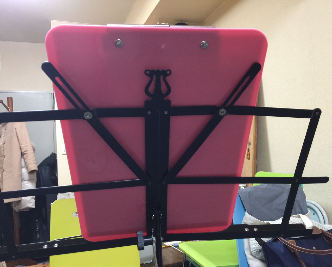 楽譜を入れるクリアファイルとノート、クリップボードが入っている。