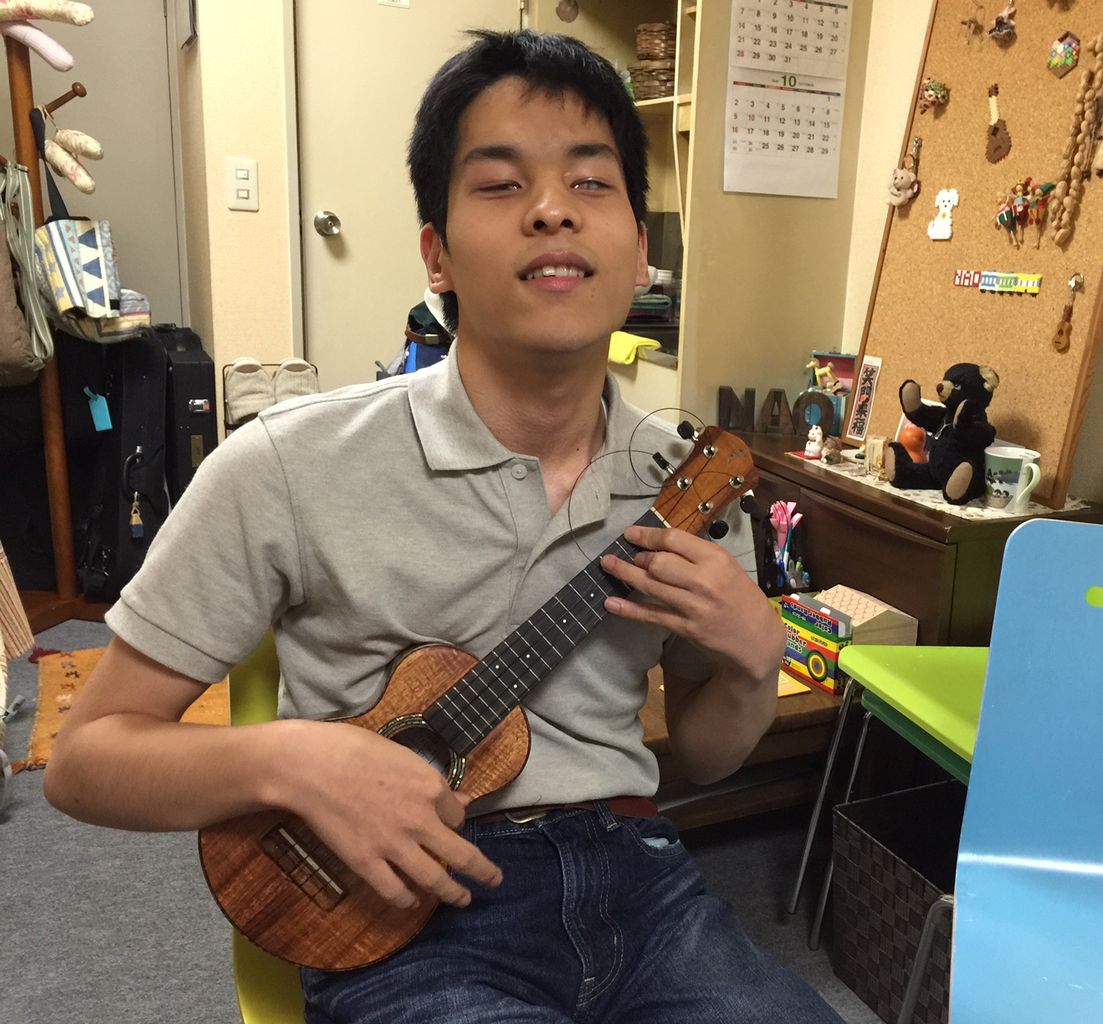 視覚障害のあるのぞみ君のウクレレは、f's uke(furubayashi ukulele)