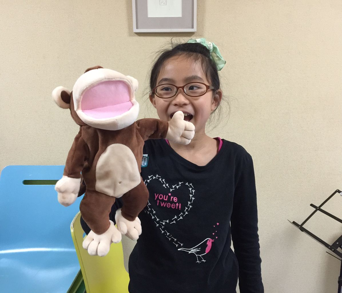 口を閉じないで話す、新しい形の腹話術。「さきちゃん」