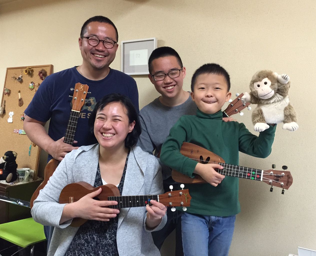 親子でウクレレを始めて、今では家族4人でウクレレを楽しんでいます。