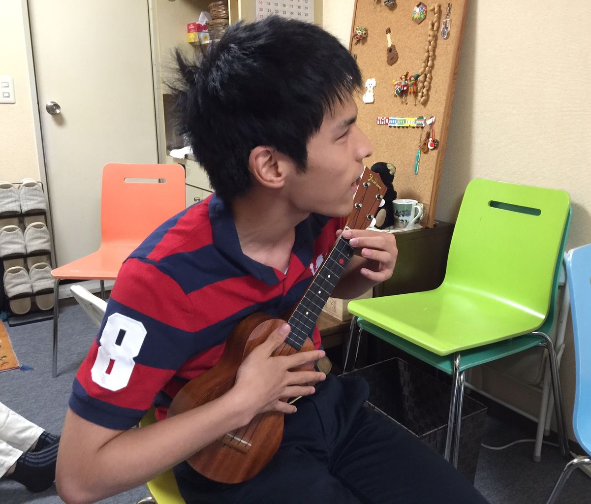 高田馬場NAOウクレレ教室 視覚障害でウクレレレッスン「のぞみ君」