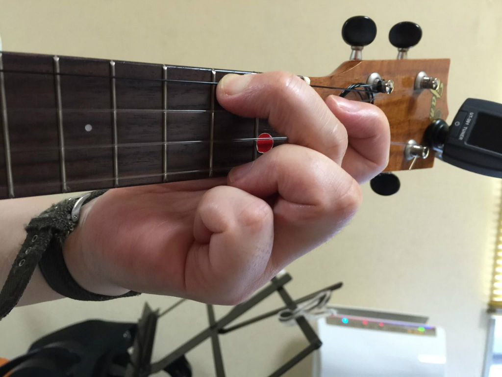 コードを押さえていない指の第一関節をしっかり曲げられる。