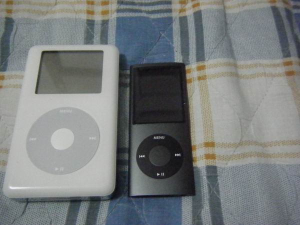 ・左が以前から使用、本日でいらない子になってしまった、「初期型ipod40GB」