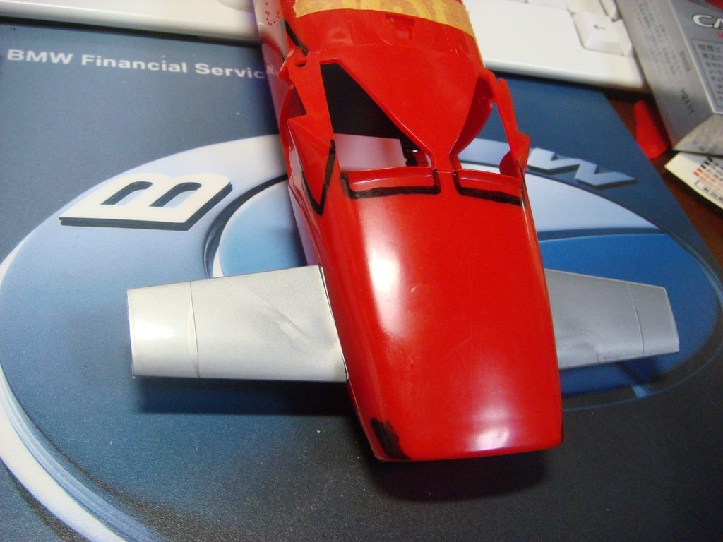 ノーズコーンが後で取り外せるようになっていたんですが、そうすると中のラジエターからの空気のアウトレットが現実と違う形になってしまっていました。
