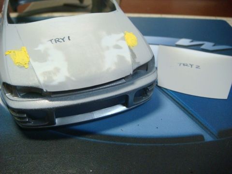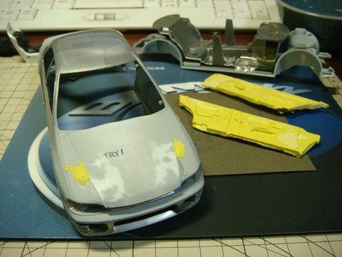 ボディはそのまま行けるかと思ったら、前期型と後期型でどうやらボンネットのプレスラインとエアアウトレットが違うようです。良く見るとヘッドライトの幅も(汗)