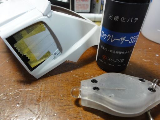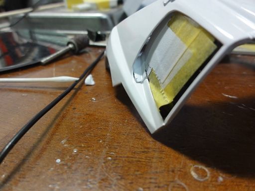 ガラスはエポキシ接着剤でリアカウルに取り付け。