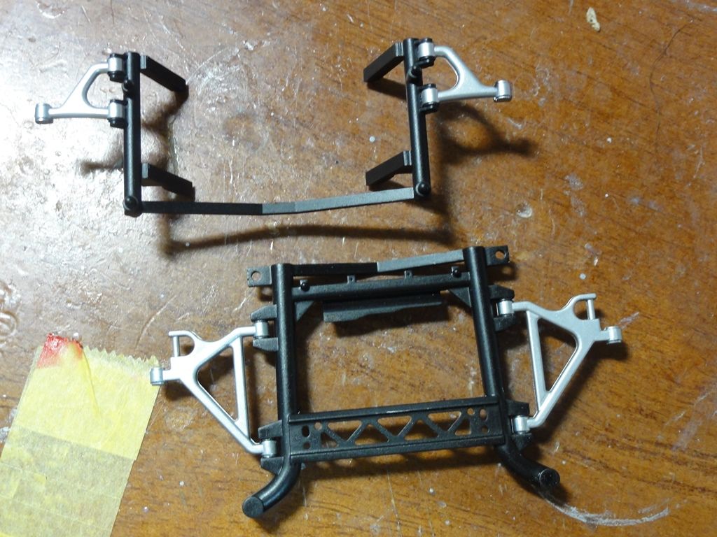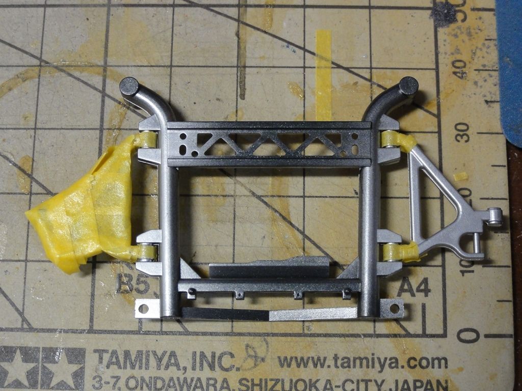 フレームがガイア セミグロスブラックで、サスアームは8番シルバーで塗装します。