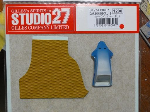 バケットシートにケブラーカーボンのデカールを貼ります。