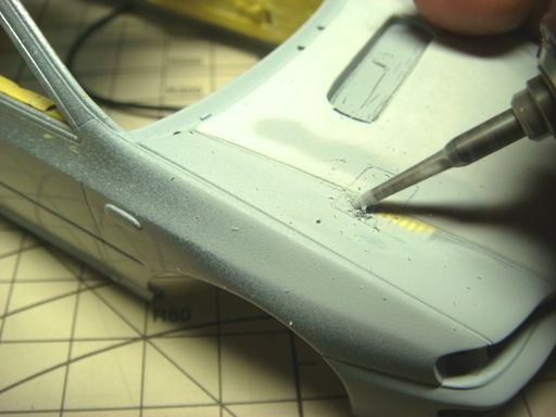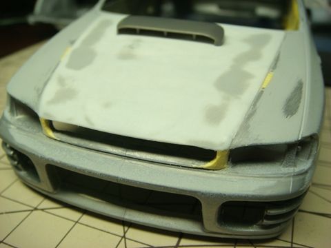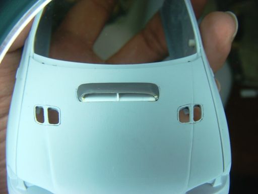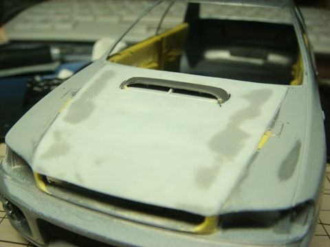 全体のバランスを確認しながら進めることにして、ボンネットのエアアウトレットに着手。