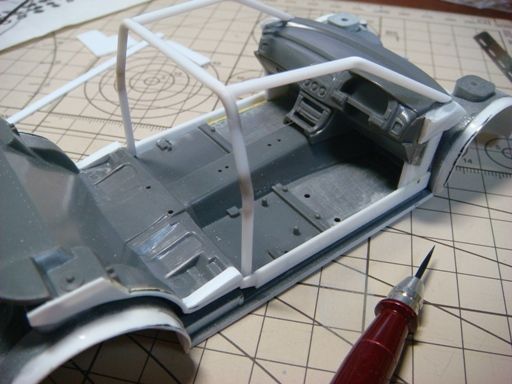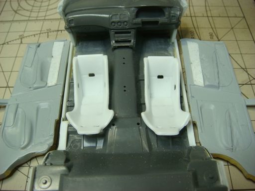 サイドシルやインパネ下のサイドキックボード、一部凹凸をプラ板で。