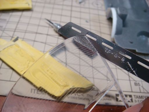 ガラスはフロントととリアのみキットを使用して、サイドは薄いプラ板で作り直し。