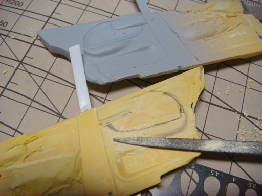 違う部分にパテを盛って、ひたすらやすりと彫刻刀で形を作ります。
