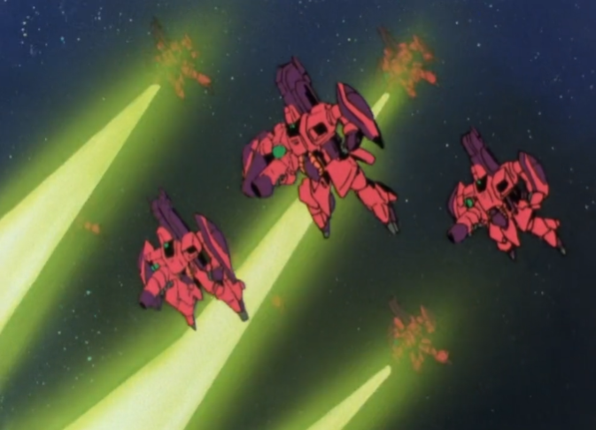 Zガンダムでカッコいい音楽とともにいっぱい出てきて